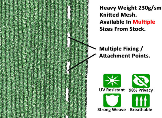 Use Weavescreen as privacy net, sunshade or as a windbreak. Use vertically or overhead. Ideal for fixing to chain-link fencing, carports, use in garden, commercial fencing / building site privacy and security. Perfect privacy and shade screening around the garden, balconies, tennis courts, poly tunnels, fruit cages, hedging, allotments or in a commercial environment for security and privacy.
